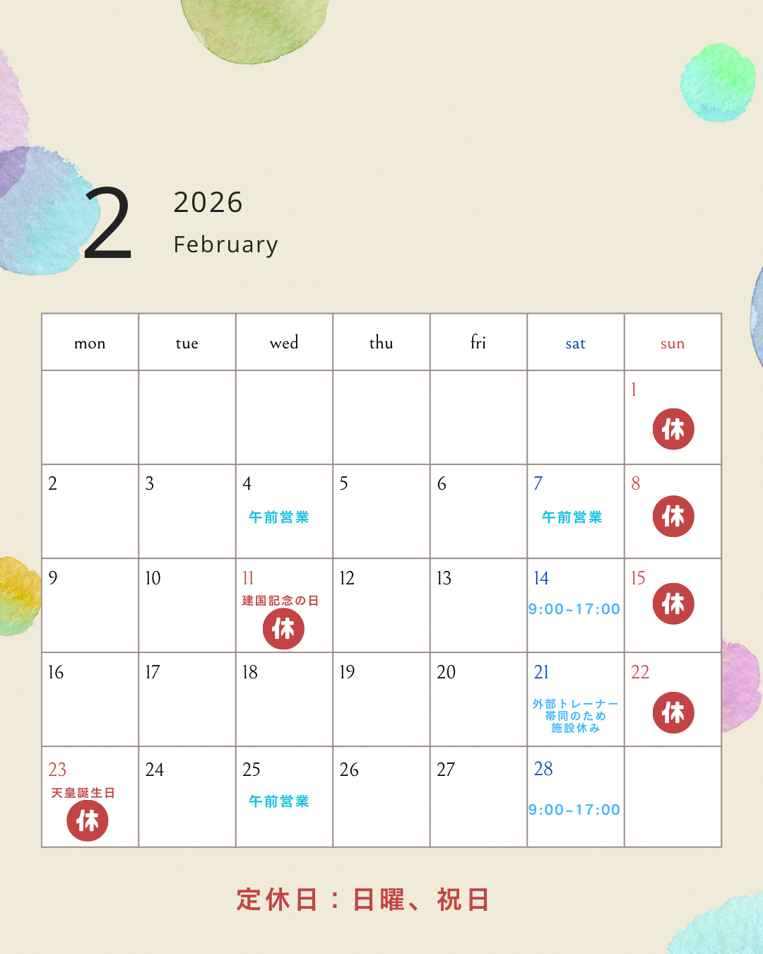| 2026.01.06 | 完全予約のお知らせ |