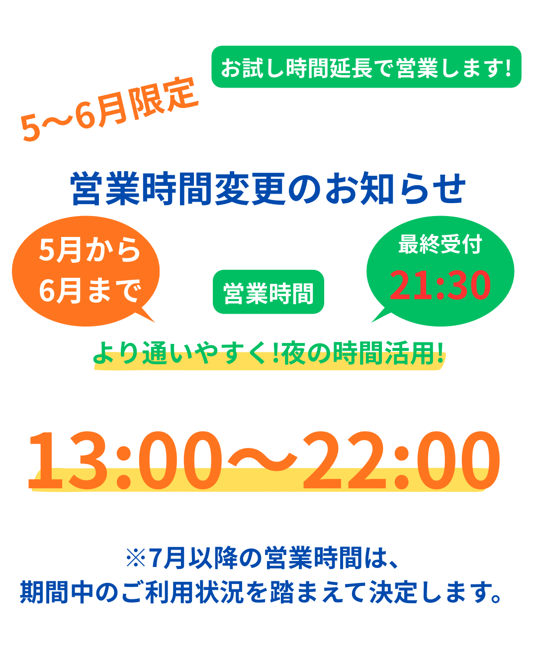 これまで通りの時間でご利用いただけます。