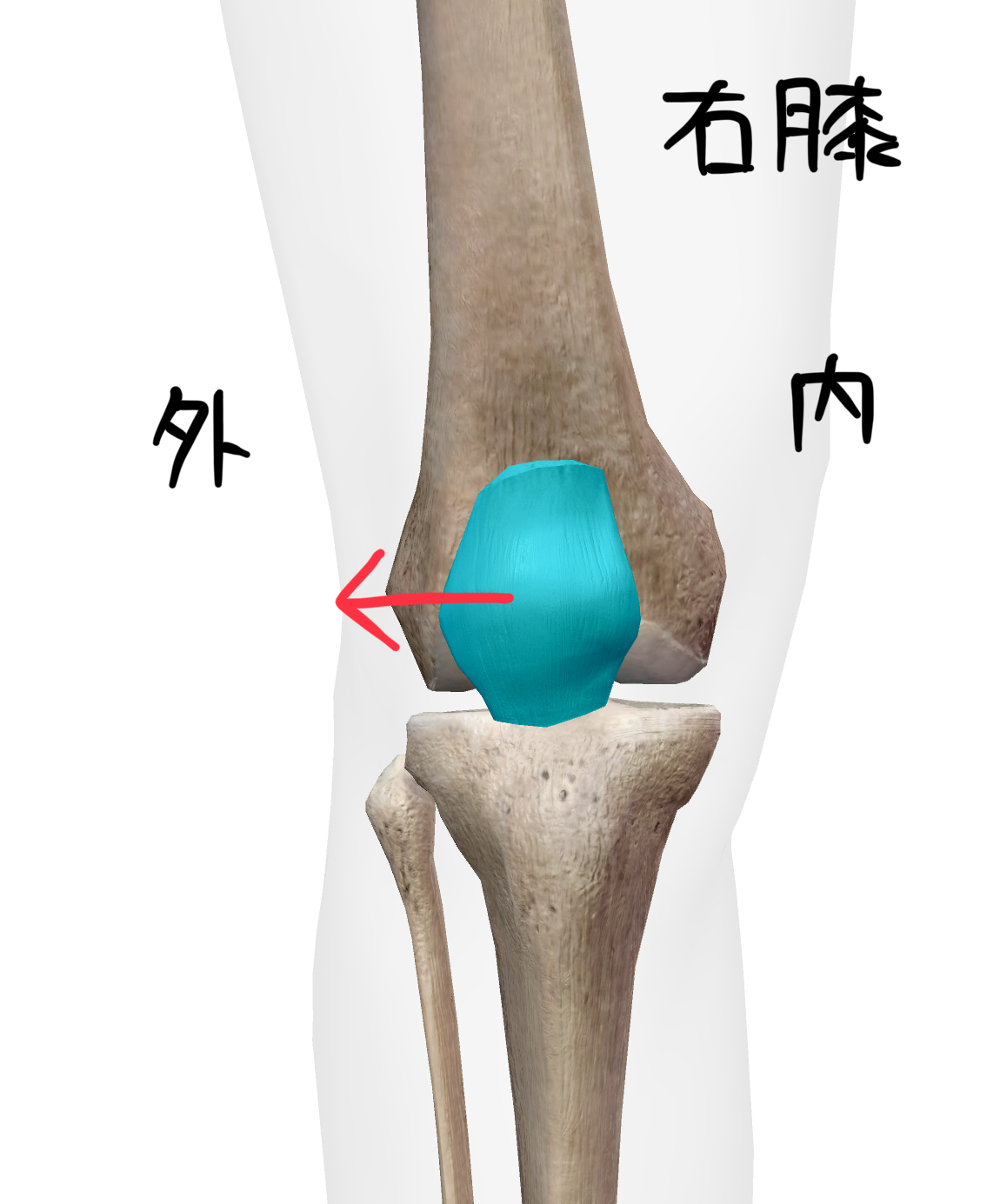 ・膝のお皿(膝蓋骨)が、本来ハマっている太ももの骨の溝から外れてしまう怪我です