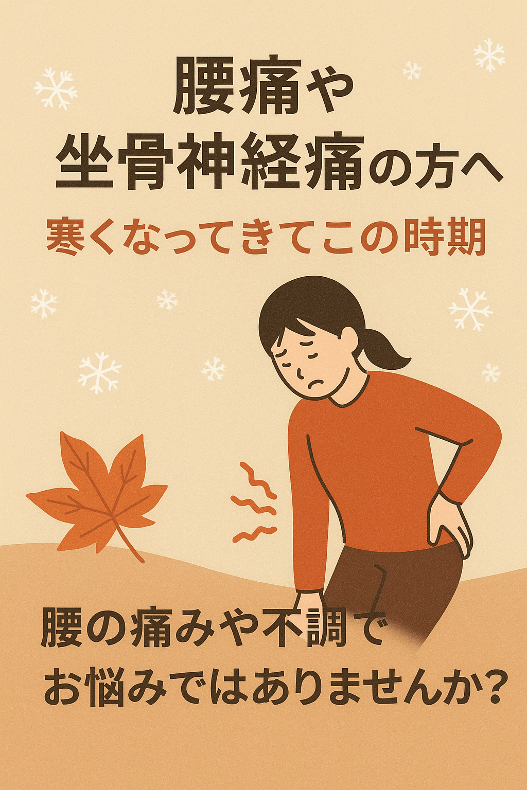 寒くなるこの時期、腰痛や坐骨神経痛が悪化しやすくなります。